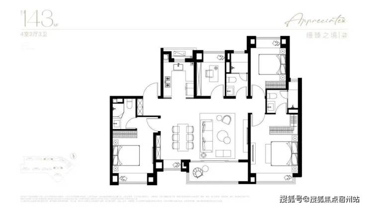 终极改善的顶奢4房!极端宽奢的南北通透户型飞机户型,你能想象到的美好都能在这个户型中体验到。