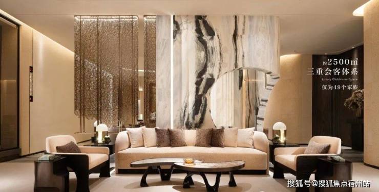 社区仅49户,但却拥有三重,共约2500㎡的会所及泛会所配套空间,户均会所面积高达50㎡,三重会所三重功能属性,私密性层层递进。