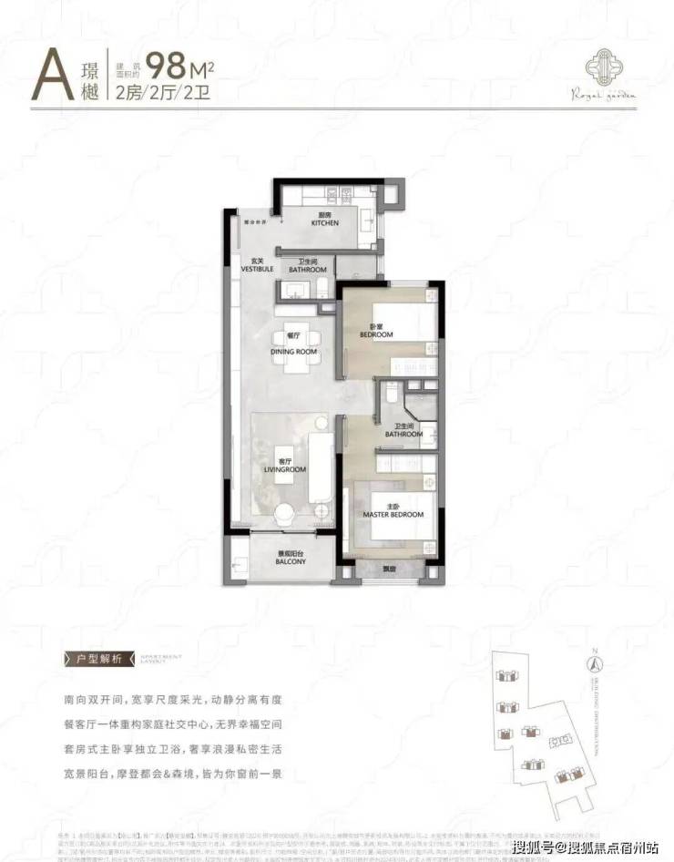 在售面积:94㎡/98㎡/100㎡2房2厅2卫
