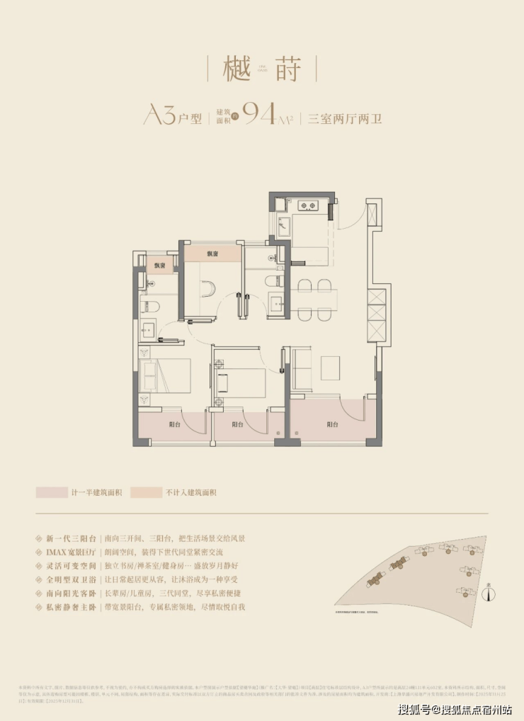 在这里,高层建面约94㎡户型做到了惊人的三阳台,对比同板块内以前的标杆小区,同面积段户型只做了1个阳台。不仅数量发生质的变化,实得面积也大大增加。