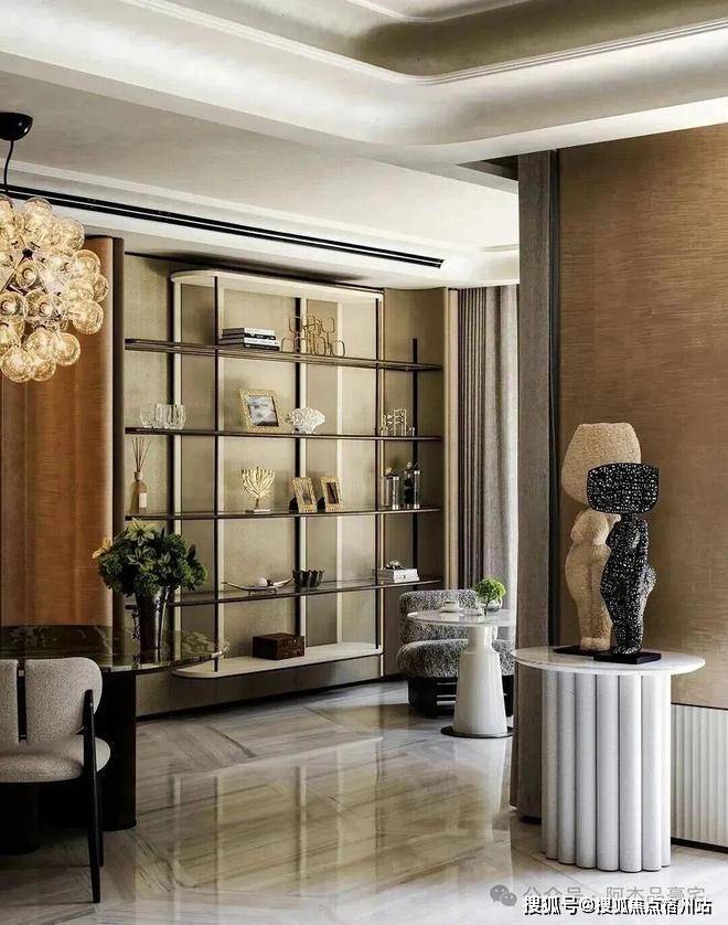 细节设计:全屋预留收纳空间(玄关柜、卧室衣柜均为定制,柜门融入复古木纹),客厅预留隐藏式投影幕布,兼顾观影与日常休闲。