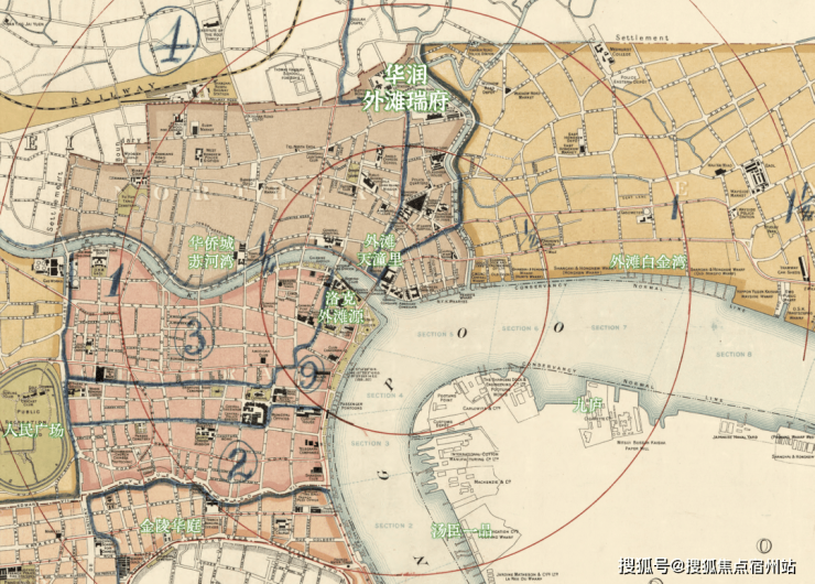 翻开1916年上海地图,以黄浦江与苏州河“一江一河”交汇处为原点, 外滩瑞府所在地块,恰处于城市核心第二圈层(1-2公里范围内),与华侨城苏河湾并列,而金陵华庭则位于第三圈层。