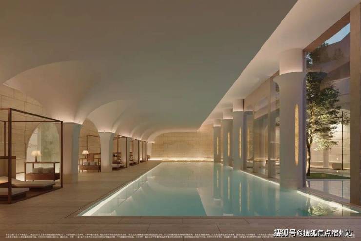 双会所系统,包括艺术沙龙空间、无边泳池与下沉庭院。