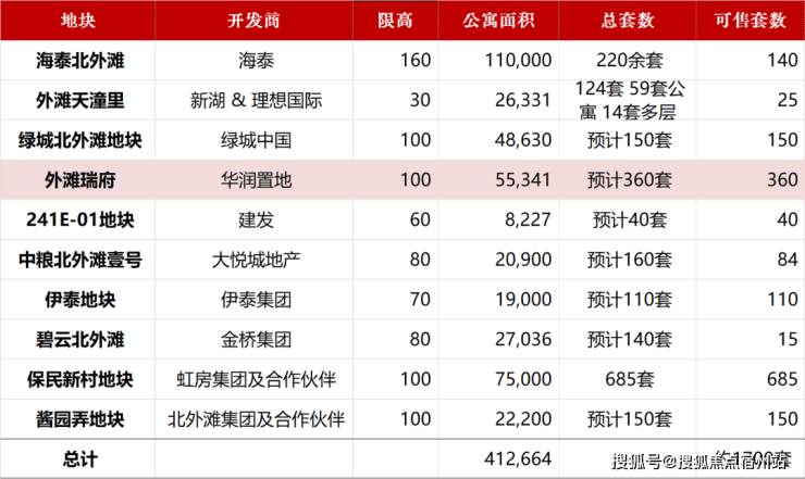 首先,大北外滩区域所有可售的住宅项目,住宅规划约108万平方米,其中约14万平方米已经出售,意味着总可售面积约为94万平方米。