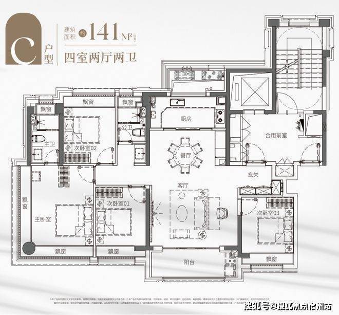 全屋足足四个飘窗设计,带来更多的采光和更好的通风,✅✅建发海阅首府售楼处电话:400 - 8824 - 258✅✅让你无需羡慕老洋房的采光。