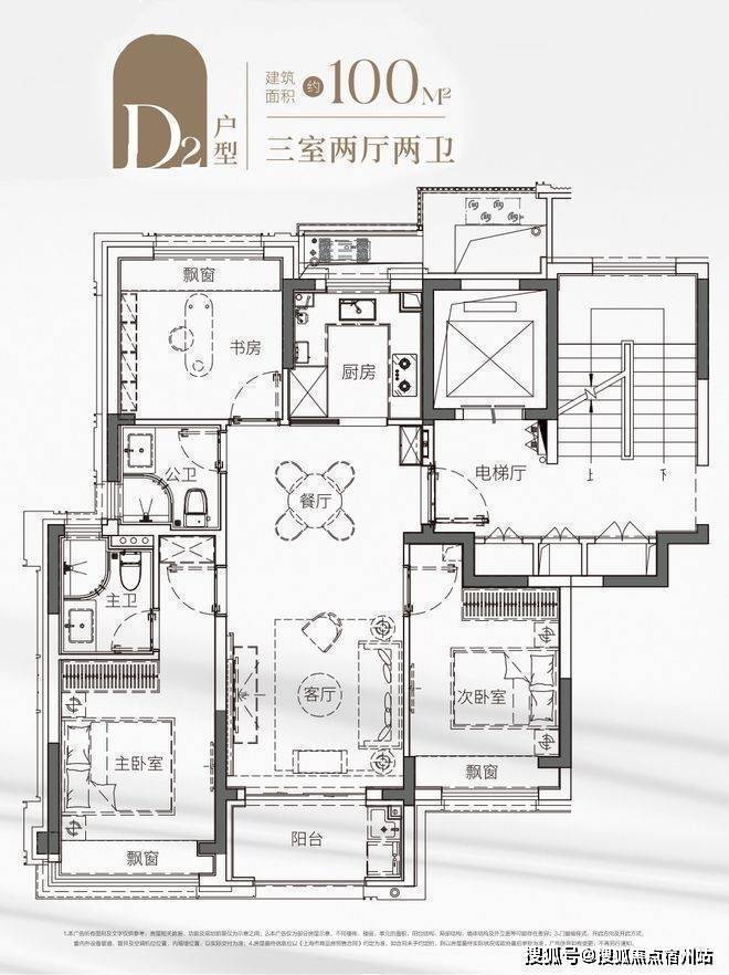 建面约96㎡3房2厅2卫