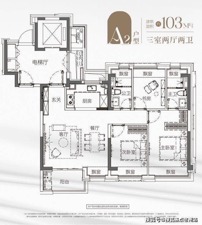 另一套建面约100㎡飞机户型,同样做了三房两卫✅✅建发海阅首府售楼处电话:400 - 8824 - 258✅✅户型方正,几乎无过道设计,每一寸空间都没有浪费,舒适不局促。