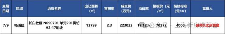 在上海的房地产市场上,又一颗璀璨的明星即将升起!7月9日的上海第三批次土拍中,北京城建与越秀地产组成的联合体以22.3 亿元的高价成功竞得杨浦区长白社区的H2-17地块,这一消息犹如一颗重磅炸弹,在地产界引起了巨大的轰动。