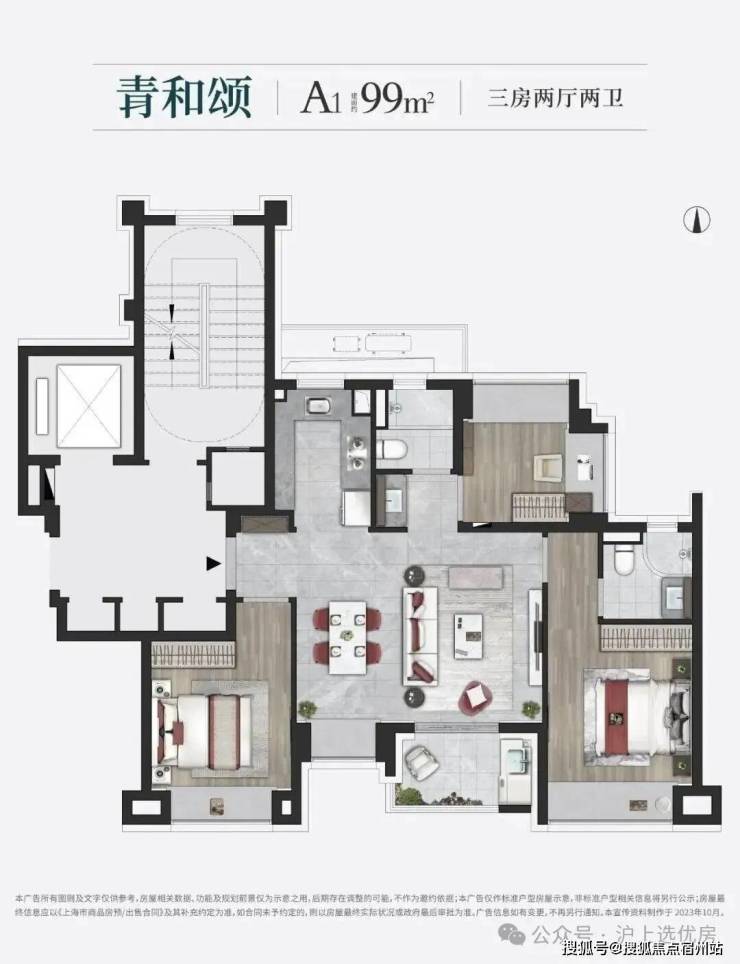 约99㎡3房2卫户型是上海市场中最主流的面积段之一,但印象青城的户型设计却超脱以往。
