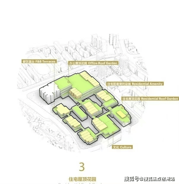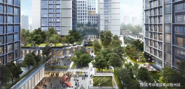根据意向效果图,雅宾利4期预计为开放式社区设计,采用空中花园将社区立体连接在一起: 项目将会采用地面抬高3层的设计,其中3层以下为商业底盘。