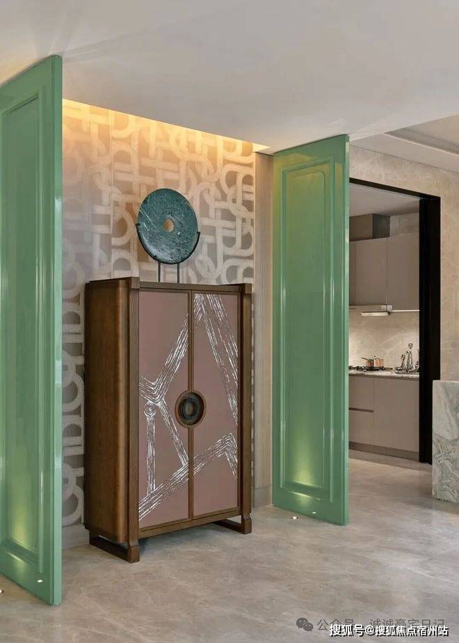 “真正的国际化是让本土基因自然生长。”设计师说。✅✅士林润园售楼处电话:400 - 882 - 4258✅✅手绘图样经数字化转译为墙面肌理,灰绿与暗红以几何切割形成视觉通感。