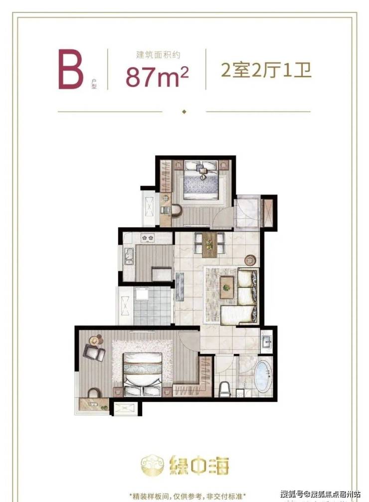 建面约87-89㎡2房2厅1卫