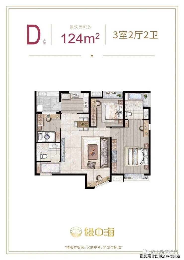 建面约124㎡3房2厅2卫