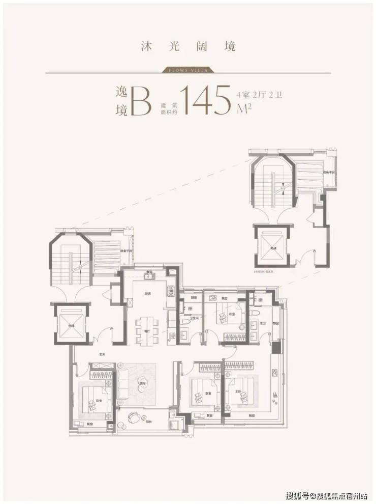 1、建面约145平户型热销且紧缺四房产品,类一梯一户设计,边套转角窗搭配超高窗墙比,采光通透,兼具功能与尺度的双重要求;