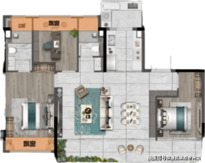 比如明源君9月初去无锡看项目,不少项目通过全屋飘窗设计,大幅提升了室内空间使用率。不少项目将飘窗拓展到了90cm进深,全屋赠送面积有了更大提升。