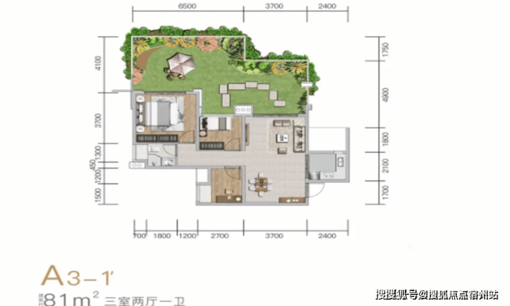 成都有个四代住宅,面积段甚至只有81平、96平左右。其中81平三房户型,在北侧设有超大空中庭院,进深达到4.1米-4.9米,开间更超过10米,户外空间的面积快赶上户内面积了。