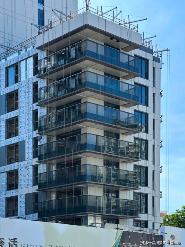 如果把镜头拉近,你会看到项目的立面设计删繁就简, 玻璃与铝板外立面 简洁干练而不失典雅,用简洁明了的线条勾勒出整体的效果,从而减少外立面对于室内空间的的阻碍和遮挡,整体看起来简约大气,同时提升业主居住的舒适感。