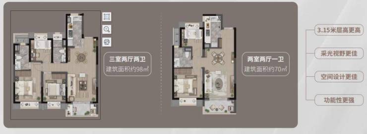 项目目前在售建面约72-88㎡2-3房,总价门槛较低。