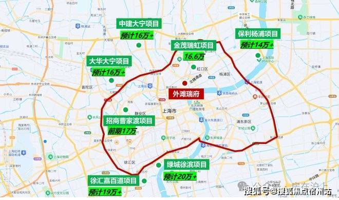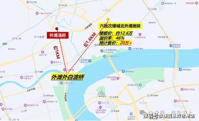 今年六批次土拍,绿城竞得北外滩新宅地,溢价率超过46%,未来售价预计突破20万元,它的位置就在「外滩瑞府」东侧约1KM。