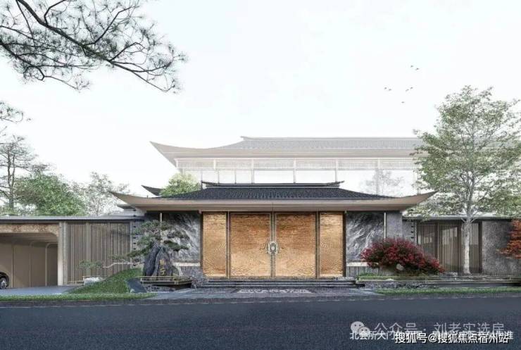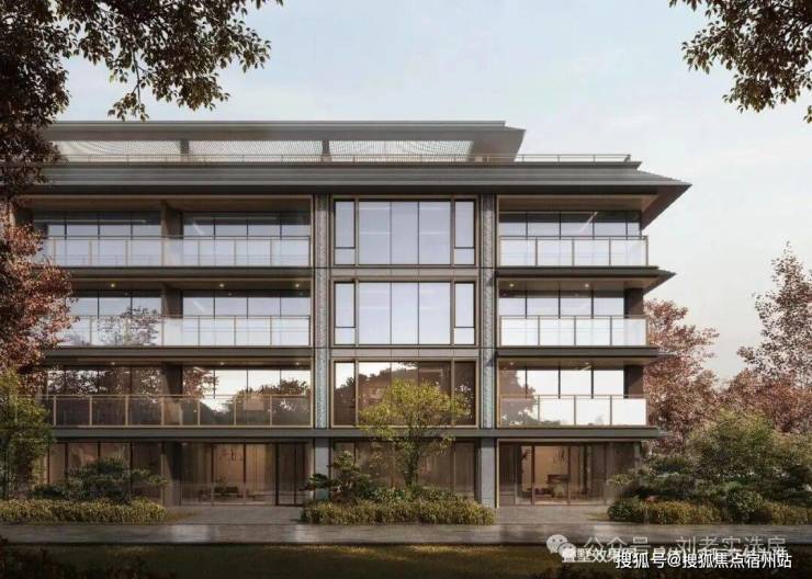 项目立面以多种新中式元素构筑东方建筑美学,横向采用大面玻璃幕墙,保障隐私的同时,尽可能的增大建筑内外场景对话。