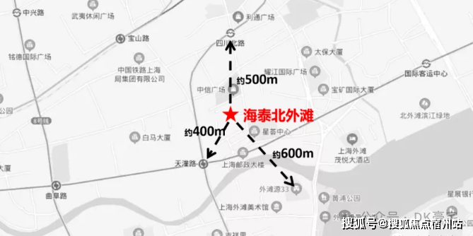 海泰北外滩位于虹口四川北路天潼路附近, 距离外滩源仅600米。