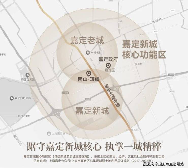而在嘉定,主轴只有一条: 城中路-沪宜公路-嘉闵高架组成的烫金主轴。