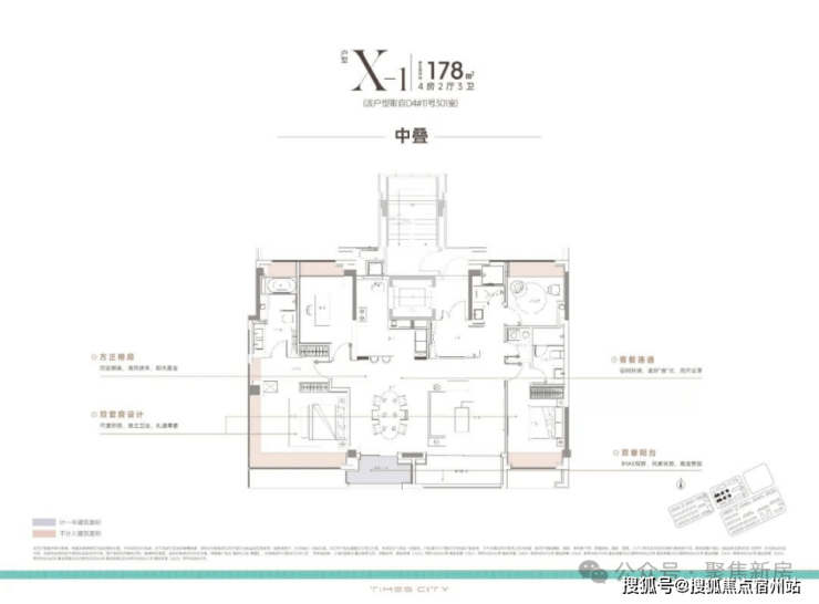 170m²上叠,南向双阳台+南北双露台: