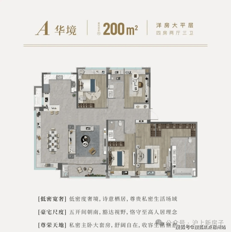 200平方米大平层,奢侈的空间、全功能的户型,满足了对大宅的所有想象。