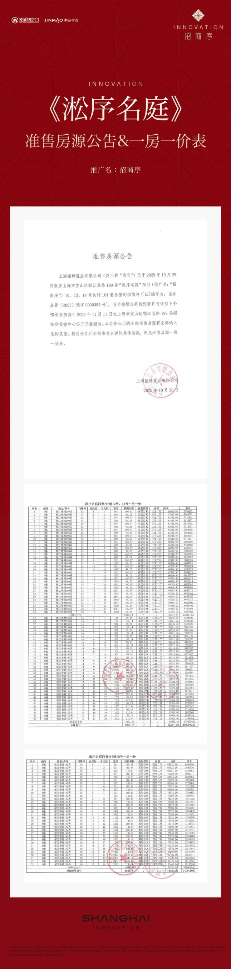 宝山中外环18号线(长江西路站,二期在建中)全新地铁盘,招商序四批次已取证, 认购时间10.31-11.4,主力户型建面约101-143㎡3-4房,均价68375元/㎡。
