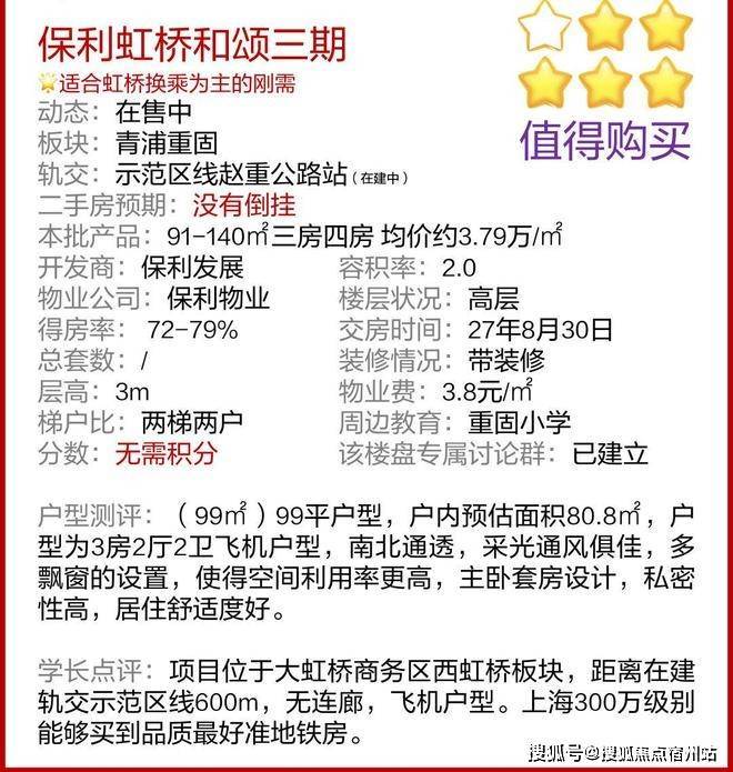 最新消息,青浦重固「保利虹桥和颂」三期在售中!推出建面约91-140㎡三房四房,均价约3.79万/㎡!