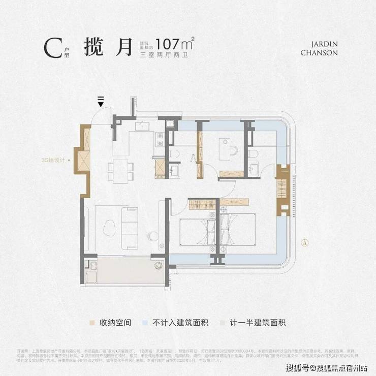 建面约107㎡的户型则刷新了我们对百平三房的认知