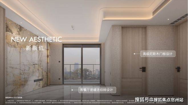 项目大量使用奢石设计,客厅四边弧形天花、主卧树叶拼花地板、精致优雅的骨骼线设计,都是开发商花费更大成本和耗材去呈现更美的视觉体验。