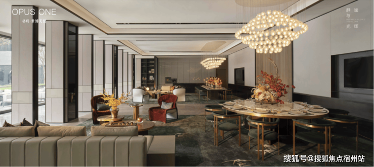 景观设计方面,保利世博天悦采用 引江入园、以水带路的手法,将滨江舒阔的国际生活平移到社区内,打造约 6万㎡景观秘境,媲美全球奢华酒店。采用大面积的留白和现代禅意的表现手法,呈现开阔舒展的质感。