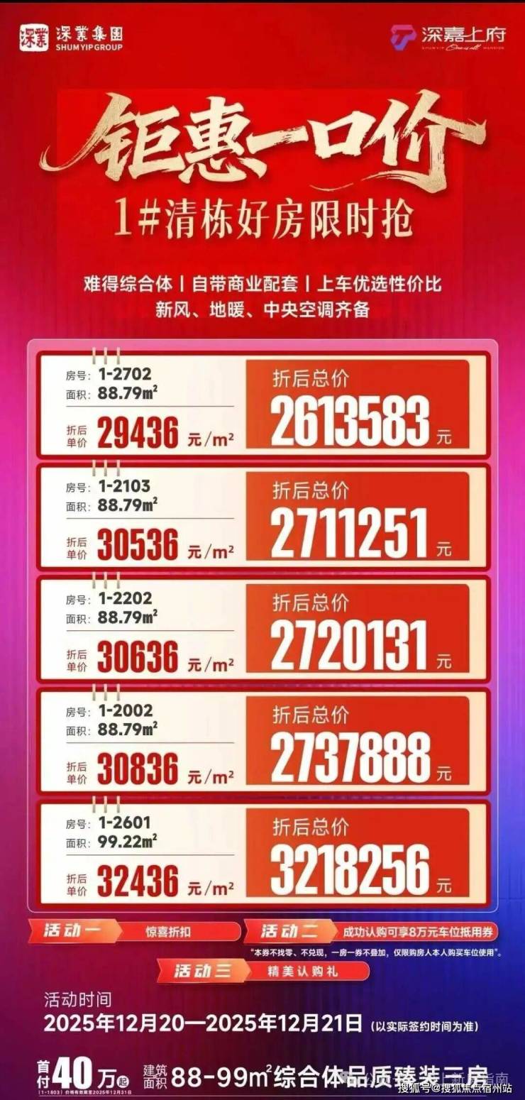 嘉定芯│同济旁│臻装美宅「深业·深嘉上府」,建面约88-99㎡3房热销中,95折+送黄金+送车位券!
