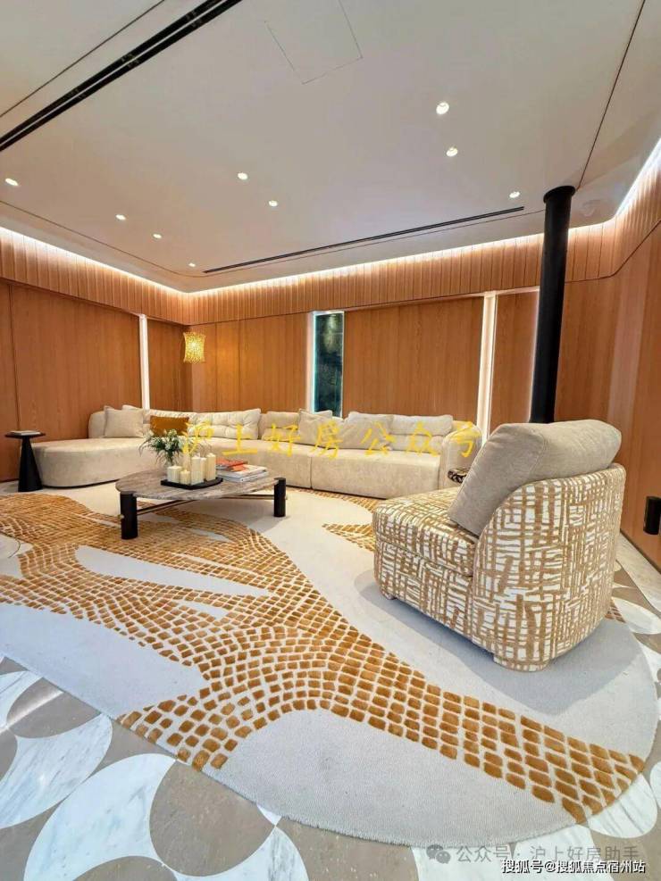 进到实地约99平样板房,整个玄关柜几乎全部都是皮质缝线包裹,细节拉满;