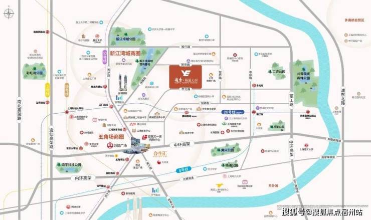 越秀长海社区项目位于杨浦五角场板块,五角场,因五条发散型大道的交汇处而得名。