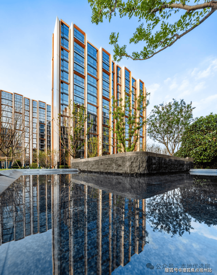 项目建筑风格为现代简约,错落的立面设计使得建筑更具有现代感和节奏感,主材大面积运用了铝板和玻璃,同时采用德国进口旭格品牌门窗,转角无框设计,让每一户室内的光照可以更加充分。