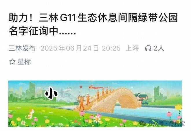 G11生态休息间隔绿带正在紧锣密鼓地建设中。近日,上海三林一则饱含生态期许的官方征集令正式发布——镶嵌于外环带上的“翡翠绿链G11生态休息间隔绿带公园,面向全社会为其四大功能区公开征名!