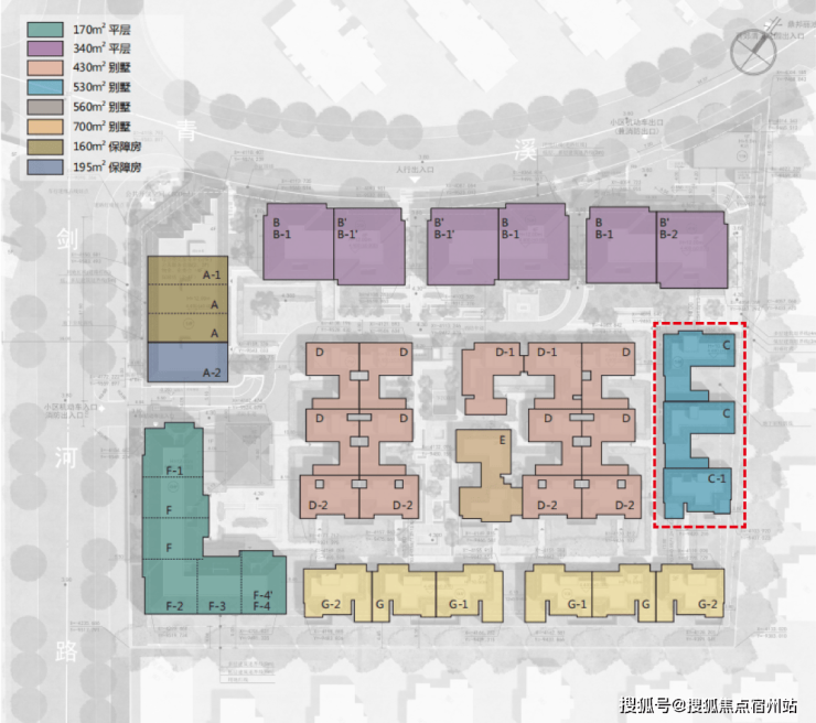 其中1#为保障房,12套建面约160-195㎡户型。