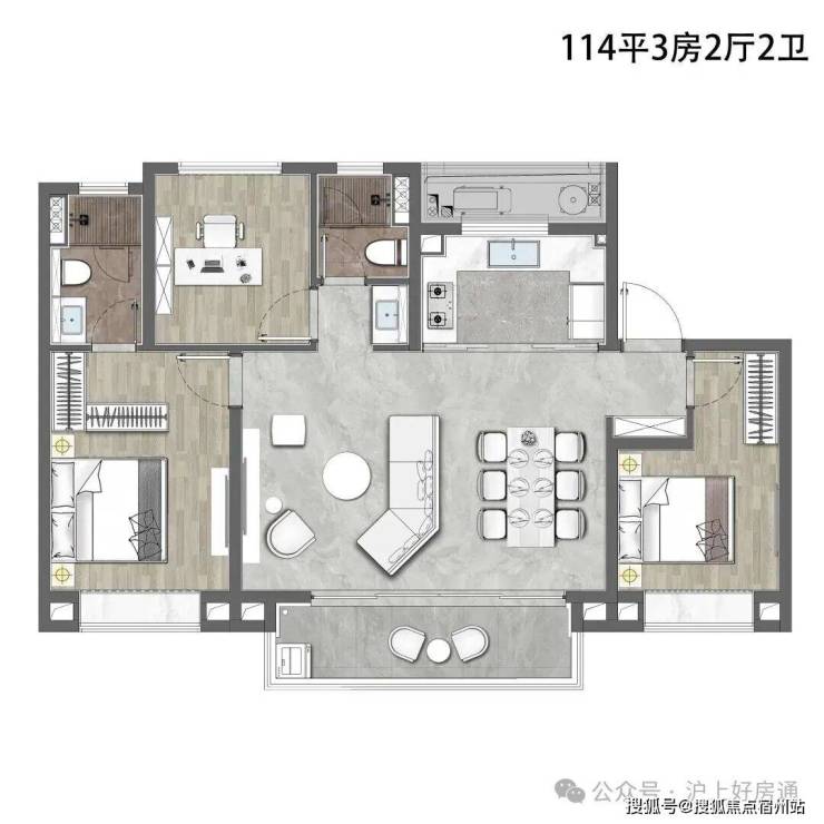 建面约114㎡3房2厅2卫户型▼