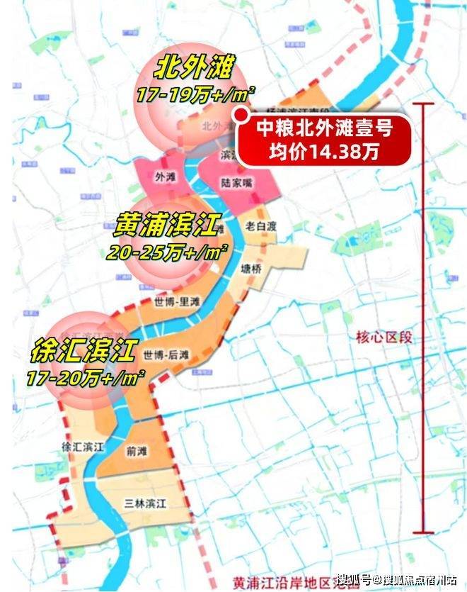 徐汇滨江、黄浦滨江、北外滩价格示意图
