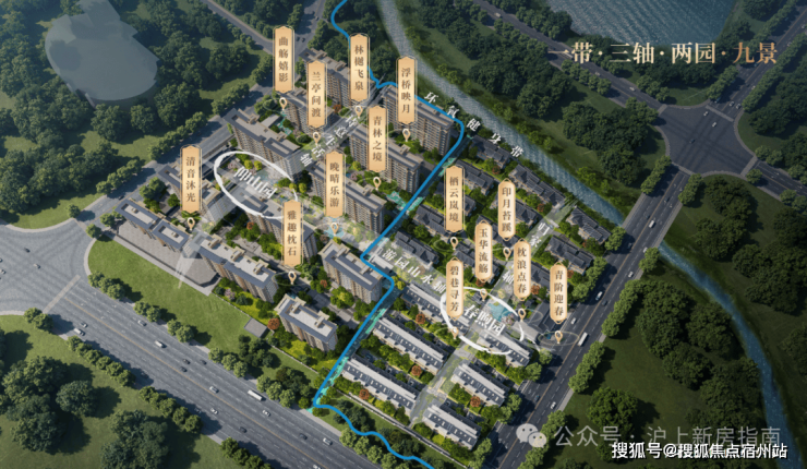 建发瑞湖示范区造凝萃江南灵秀与宋式美学精髓,一草一木皆暗含宋画意境,宛若展开一幅可居可游的立体《西园雅集图》。依循宋代造园理法,金山罕有东西双大门规制,东西两园分别以“三进”礼序,营造层层递进,以一带两园三轴九景谱写风雅入画的金山当代诗意生活之典范。