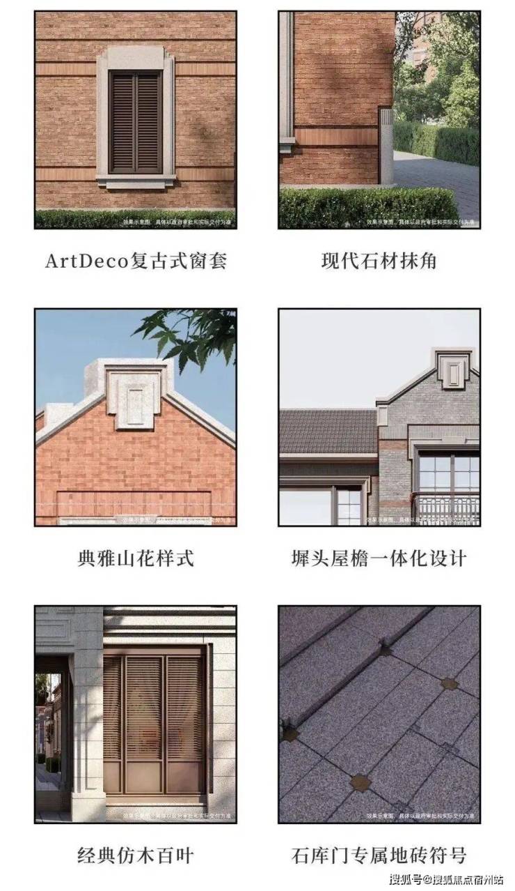 匠心细节上,加入了6大新复古元素,包括Artdeco复古式窗套、现代石材抹角、典雅山花样式、墀头屋檐一体化设计、经典仿木百叶、石库门专属地砖符号等,用先锋表达回应在地文化。