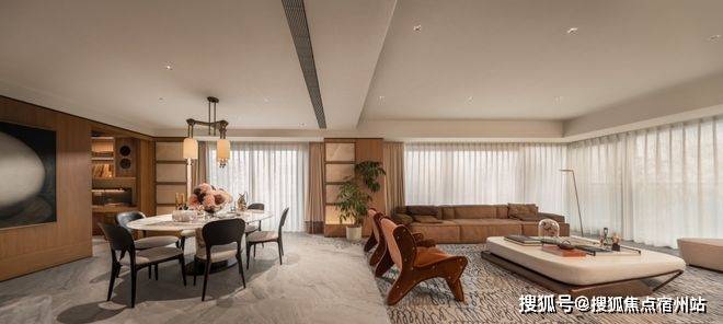 建面约240㎡四房三厅三卫,由国际知名室内设计师吴滨执笔,以厨电、收纳、家政、智能、幕墙、定制“六大满配”,实现了从空间功能、材质美学到身心体验的全维革新: