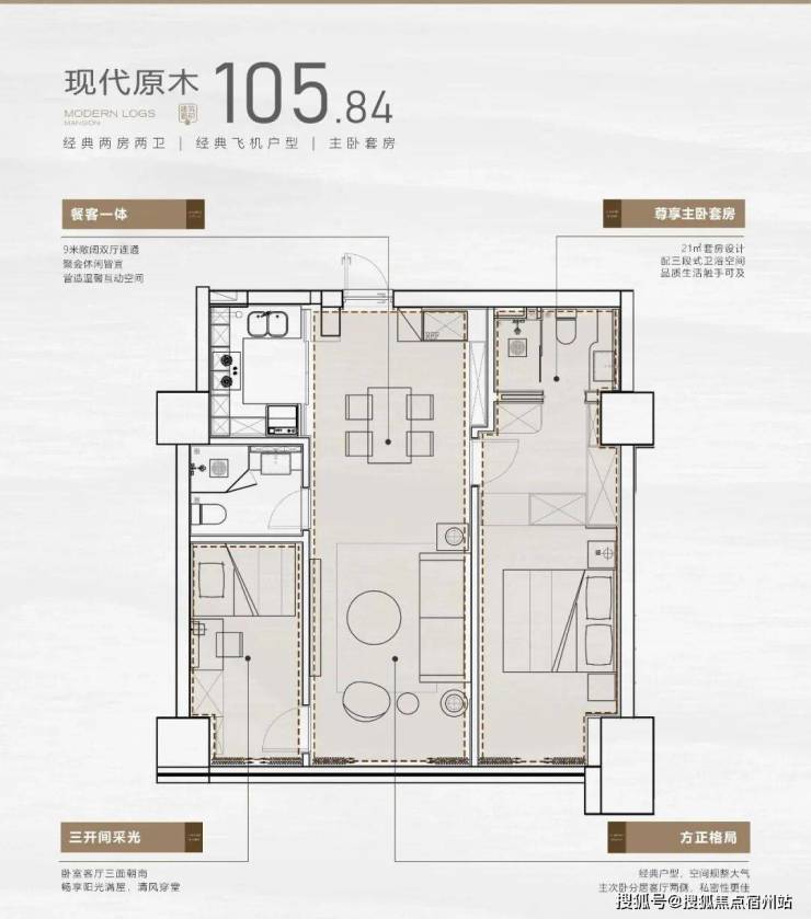 户型设计上,打破公寓常规暗间的局限,项目全部设计成全明2房或3房格局,做到没有一个暗间的居住空间,并全系标配主卧套房+双卫配置,提升居住配置。
