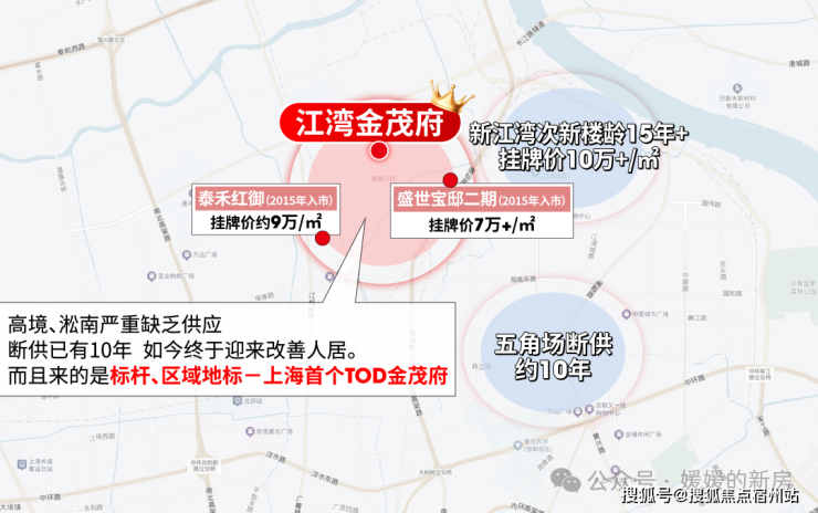 五角场同样如此,近10年断供;而新江湾次新房龄普遍15年+,挂牌价10万+/㎡,总价很高。 久旱逢甘霖,这个片区终于等来了睽违已久的新供应!关键来的还是王炸——上海首座TOD金茂府,不仅将牢牢占据区域品质头把交椅,享受领先周边N代的产品体验。TOD综合项目的开发更将重塑板块格局,引领价值蜕变。