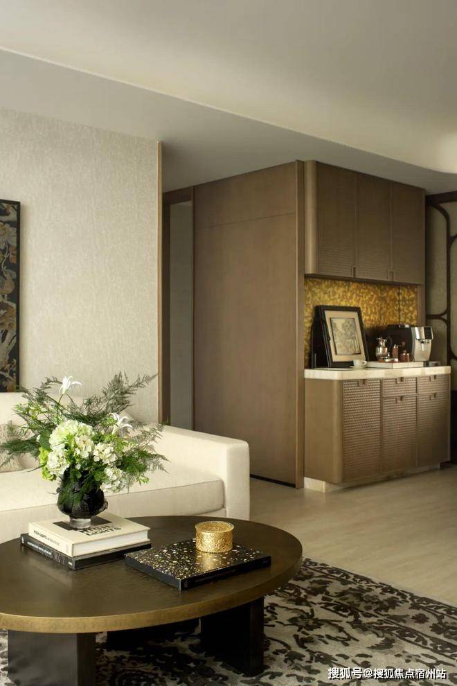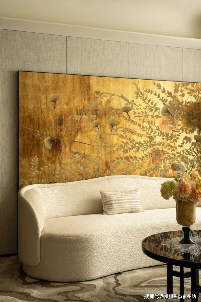 整体空间以温润米色及浅金色为基调,灵感源自“沪上古树”银杏,将其静谧、悠然之姿转译为空间语言,融入肌理、纹样与构图。自然的韵律悄然渗透生活场景,为空间定制专属奢华体验。