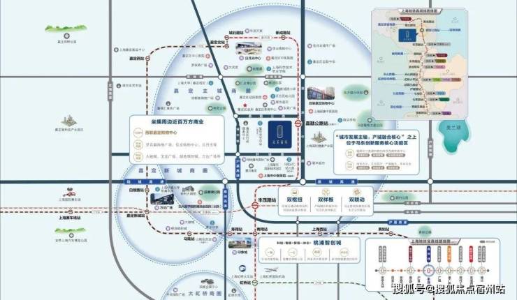 距众禾嘉苑仅一站的 丰茂路站,即为一主二辅枢纽体系中的嘉定东枢纽,是嘉闵线、宝嘉线的换乘站,可 为新城提供直达苏锡常的大容量、高可靠公共交通服务,是嘉定新城最具潜力的核心引擎。