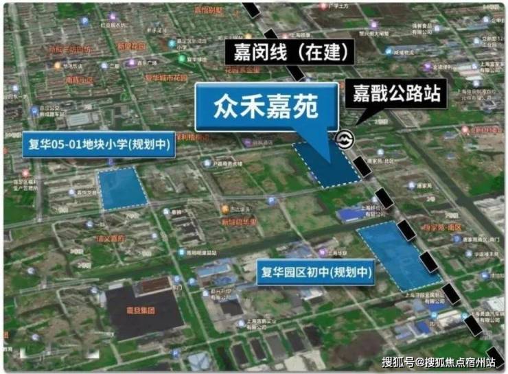 众禾嘉苑距 嘉闵线嘉戬公路站(在建中)直线距离仅约20米!