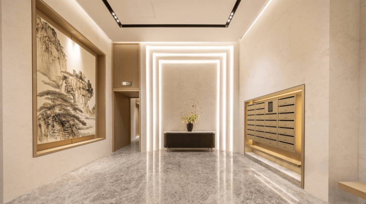 ✅天安1号售楼处电话:400-833-6309(官方售楼处电话)入户方面,相比2022年各大豪宅交付的毛坯大堂,天安1号的入户精装大堂尽显奢华,整个归家仪式感充满了艺术氛围。